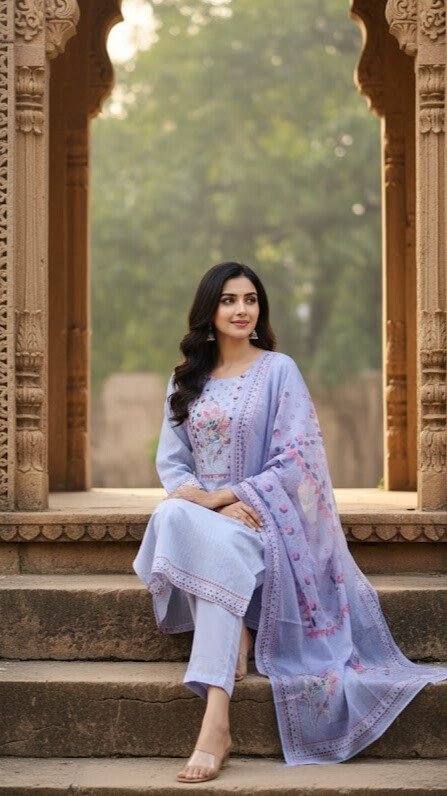 Serene Lavender Floral Modal Silk Kurta Set (3-Piece)